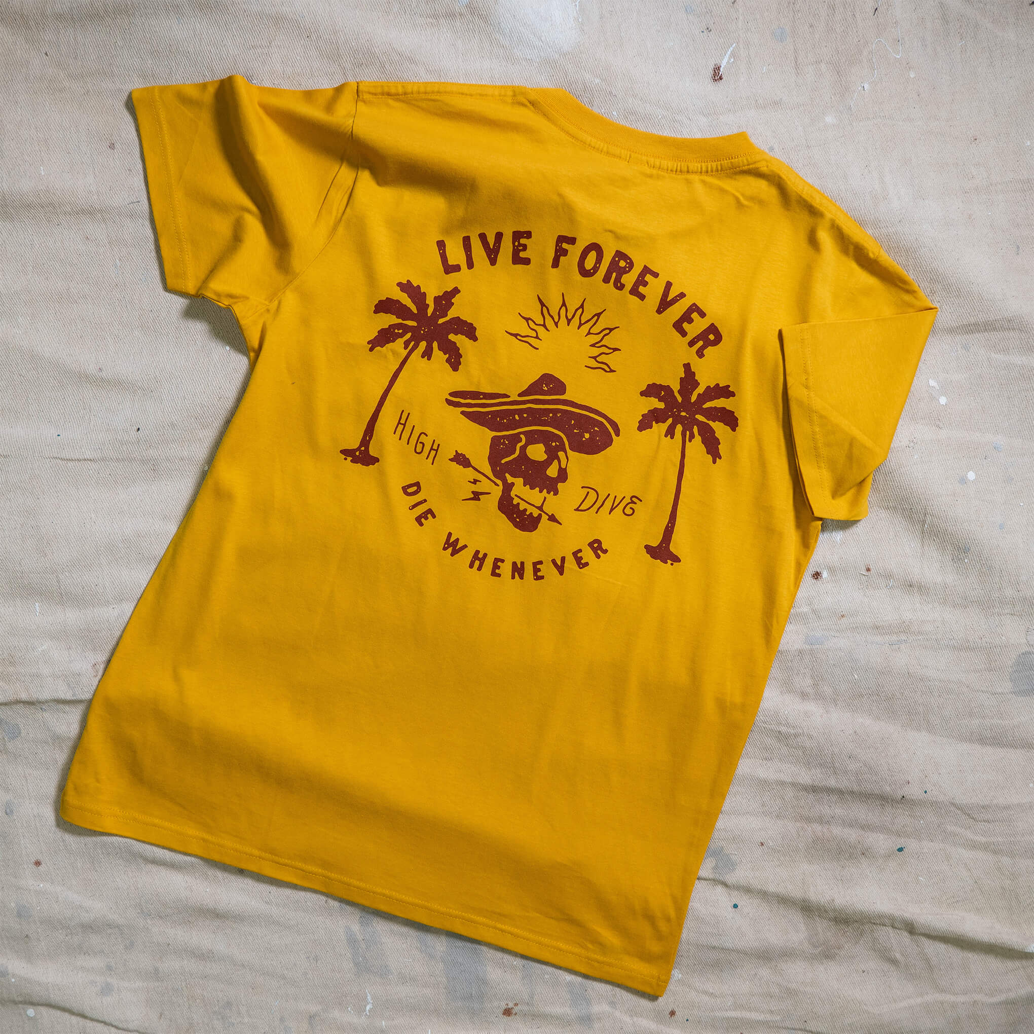 - Large back print of our Live Forever Die Whenever design
