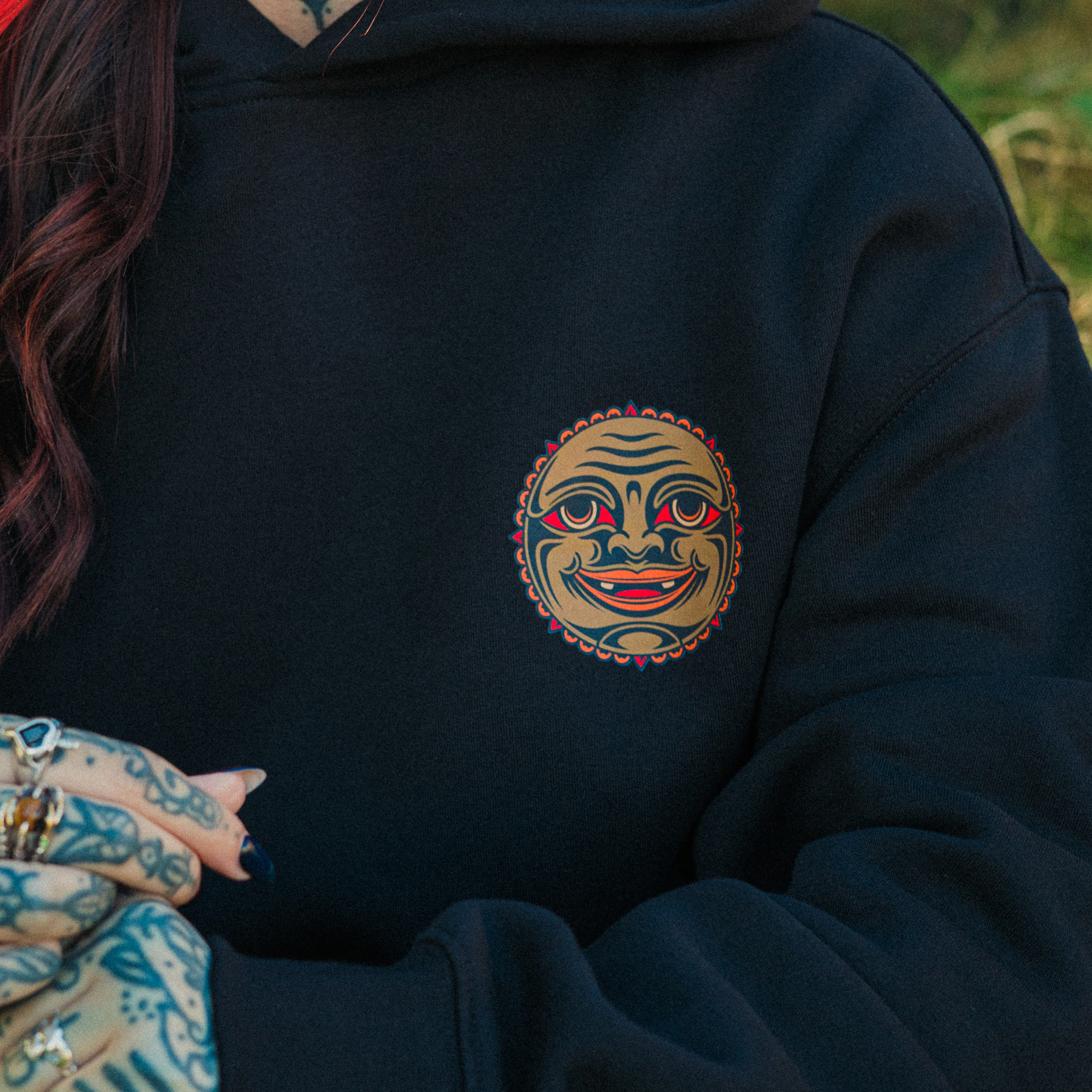 - Front pocket print of our Happy Face design